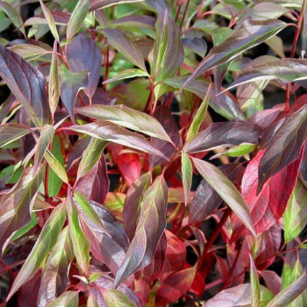 Компактный куст высотой и диаметром до 120 см. Побеги с ярко-красной или коралловой блестящей корой, особенно эффектны поздней осенью и зимой. Листья волнистые по краю, темно-зеленые сверху и сизоватые снизу, осенью багряные или бордовые. Цветки мелкие, белые, собраны в щитковидные соцветия на концах ветвей. Цветет в июне. Плодоношение с августа по октябрь. Плоды округлые костянки, белые с сизым оттенком, несъедобные. Неприхотлив, зимостоек. Хорошо переносит стрижку.  Место солнечное или полутень. Любая садовая почва, предпочитает дренированные, достаточно увлажненные грунты. Уход минимальный. Ежегодная обрезка весной, так как наиболее яркая окраска у молодых стеблей.