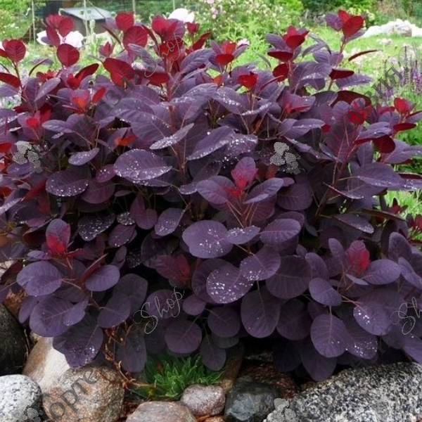 Скумпия кожевенная 'Лилла',Cotinus coggygria 'Lilla' - известная как карликовая скумпия, представляет собой компактное и простое в уходе растение, которое станет украшением любого сада. Максимальная высота  всего 1,5 метра, что делает ее идеальным вариантом для небольших садов или в качестве  смешанной живой изгороди. Яркие пурпурные листья, которые осенью становятся ярко-оранжевыми, создают завораживающую игру красок круглый год. Летом Cotinus coggygria 'Lilla' украшает себя нежными перистыми соцветиями, напоминающими тонкий парик, что и дало кустарнику его название. Эти цветы не только визуально привлекают внимание, но и являются настоящим магнитом для бабочек и пчел, что делает их экологически ценным дополнением к любому саду.