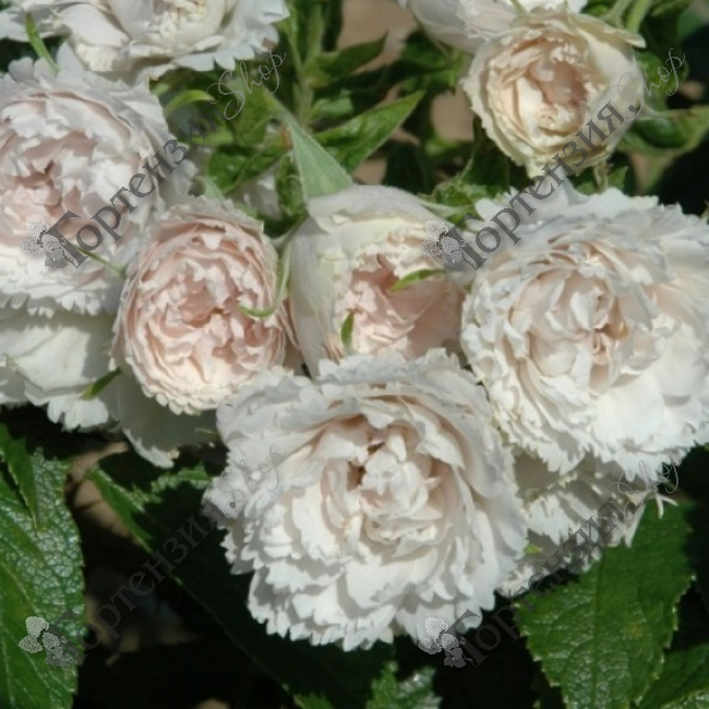 Этот гибид ругоза White Grootendorst  формирует куст средних размеров и создаст приятный контраст на клумбе с розами. Куст ветвистый,высотой 100-150 см и шириной 125 см,  прямостоячий, хорошо оттеняет цветки, которые покрывают весь куст в течение лета. Цветки белые, полумахровые, с зубчатым краем.  Цветки диаметром 3-4 см, полумахровые (9-16 лепестков), похожи на гвоздику, почти белые, в соцветиях по 5-10. Цветение повторное в течение сезона. Побеги колючие.  Устойчивость к болезням хорошая