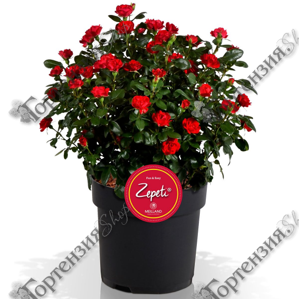 Роза Зепети (Rosa Zepeti)- обильно цветущая миниатюрная роза с короткими прямостоячими побегами и ярко-красными маленькими цветками. Вырастает до 60 см в высоту. Листья зеленые. Цветки полные, красные, состоят примерно из 25 лепестков, диаметром до 5 см после раскрытия. Растение обильно цветет в июне, повторяя цветение до осени. Сорт высокоустойчивый к мучнистой росе и черной пятнистости, хорошо переносит летнюю жару и морозы (5 зона). Лучше всего растет на солнечных участках или полутень.
