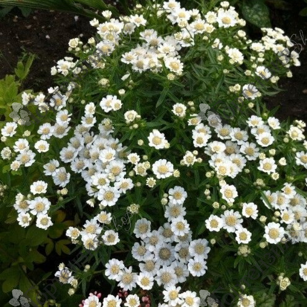 Тысячелистник птармика "Nana Compacta"- компактный куст, очень густой. Стебли прямостоячие с большим количеством листьев. В высоту может достигать до 30 см. Цветки-корзинки крупные, ослепительно белого цвета.  Растение предпочитает солнечные места и хорошо дренированные почвы. Хорошо переносит холода и засуху. Не боится вредителей и болезни. Используется для групповой посадки в рокариях, миксбордерах, а также в цветущих садах, где имеются другие многолетники.