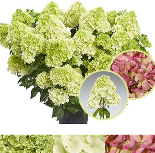 Метельчатая гортензия "Пандалус" – эксклюзивная серия Патио немецкой селекции PAN, отличается невысокой, компактной и пышной формой куста, высотой до 100 см, и диаметром до 80 см, рано зацветает и обильно цветет, неприхотлив в уходе. Цветки имеют выраженный приятный аромат, которым будет окутан ваш сад на протяжении всего периода цветения. Соцветия плотные, конусовидные, в начале цветения нежно-зелёного цвета, затем постепенно к осени становятся ярко-розовыми. На солнечном участке или в легкой полутени цветение будет пышнее и ярче. Ветви крепкие, прямостоячие. Цветет с июня и до заморозков. Зимостоек, неприхотлив. Прекрасно смотрится как бордюрное растение, так и очень декоративны в кашпо.